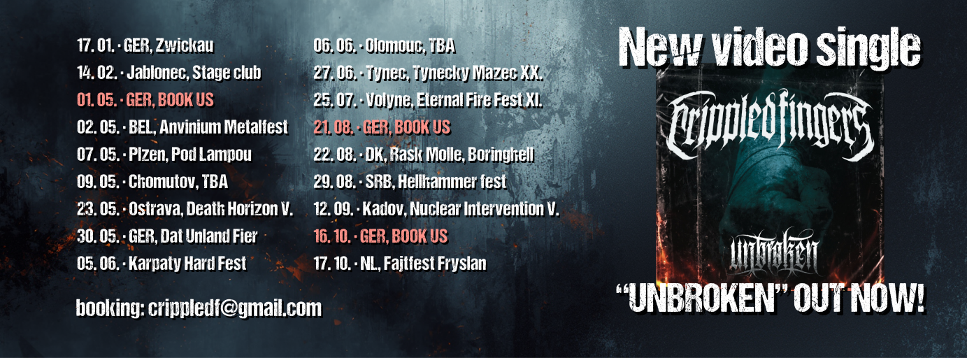 After their third album Through the Pain and the release of their full live set from Fajtfest Fryslân, Crippled Fingers are moving into the next chapter, with a new album on the horizon. Their next single, “Unbroken”, is out now!