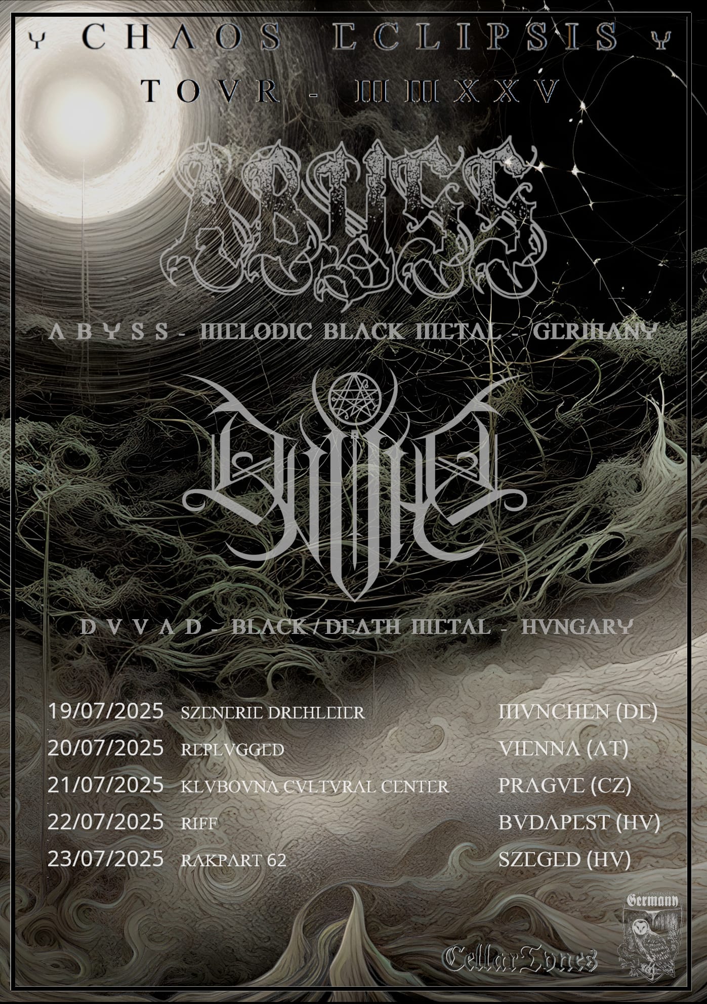 Abyss (DE – melodic black metal) and DVVAD (HU – black/death metal) will join forces again this summer for five shows across Central Europe—their first shared run since 2019’s Further into Perdition tour.