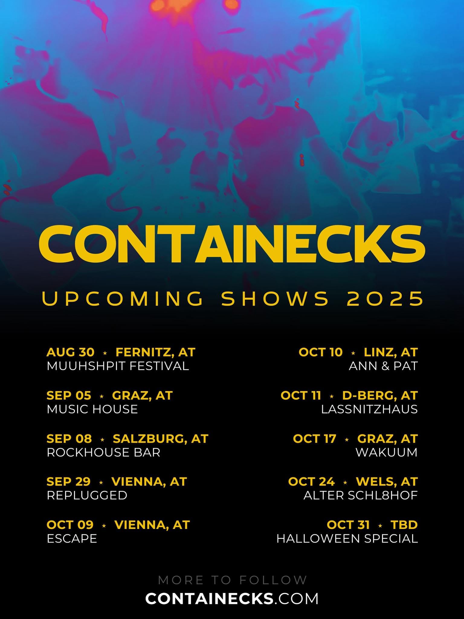 Graz-based progressive nu-metal and rapcore band Containecks will release their new EP "Musik zum Putzen" (Music for Cleaning) on September 5, 2025. The record brings together six songs: three reimagined versions of earlier fan favourites and three brand-new tracks that were shaped in rehearsals and already tested live.