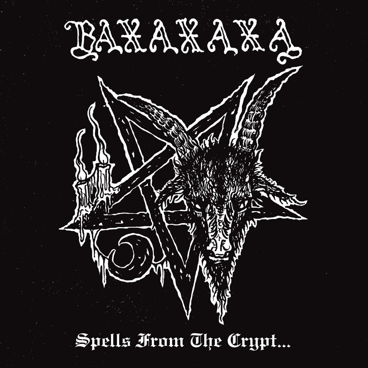 Down With The Most High Productions has released a double vinyl LP anthology featuring all the early material by German black metal band BAXAXAXA. Titled "Spells From The Crypt...", this anthology is available in both regular black vinyl and an exclusive limited edition on obsidian marbled vinyl, which comes with a silkscreen altarpiece outer jacket and extended artwork by Rotting Reign (who has also worked with Hulder, Spectral Wound, Mammoth Grinder, Deathrite, and TRHร).