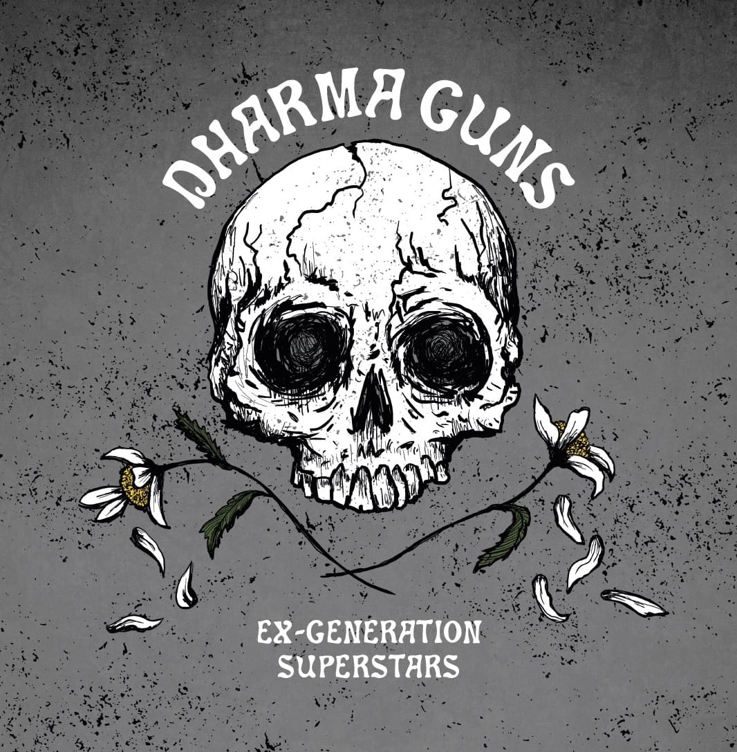 "Ex-Generation Superstars", the debut album by Dharma Guns, is set for release on November 1, 2024, via Rockhoper Music. Just a couple of bums, shooting Dharma Guns, the Helsinki-based band is ready to make their mark. Dharma Guns, the self-proclaimed "bastard child of Jack Kerouac and Guns 'n' Roses", aims for stardom with this first full-length release, delivering raw, high-energy action rock.
